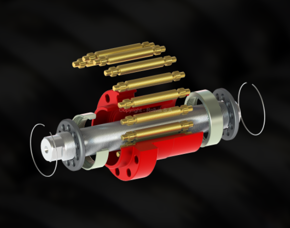 RV1倒置卫星滚柱丝杠基于RV卫星滚柱丝杠的原理,但其特点是螺母系统的倒置。